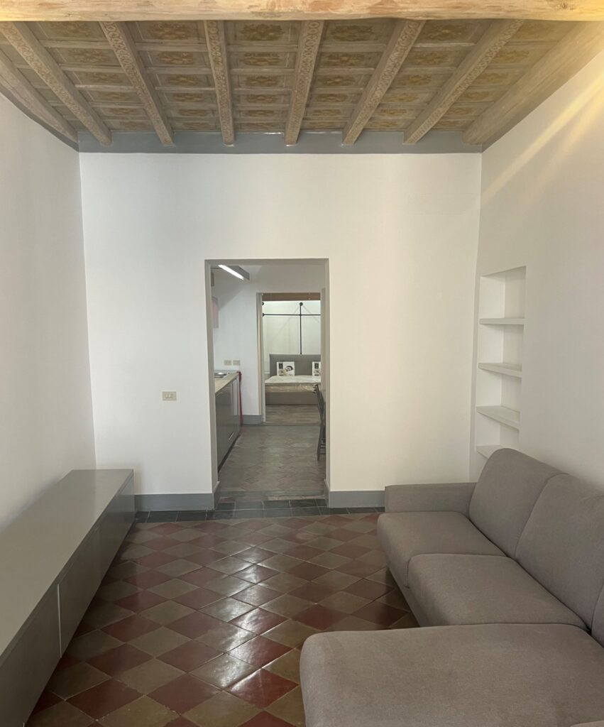 DESCRIZIONE DELL’IMMOBILE: L’appartamento, posto al terzo piano, vanta una superficie commerciale di circa 70 mq ed è caratterizzato da finiture di alto valore storico-artistico, tra cui soffitti a cassettoni e pavimenti in mattonato tipico d’epoca.